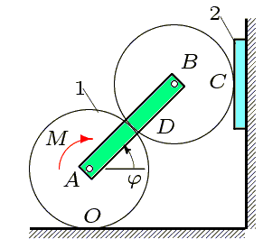 верхнему цилиндру массой m1 приложен момент M, масса спарника